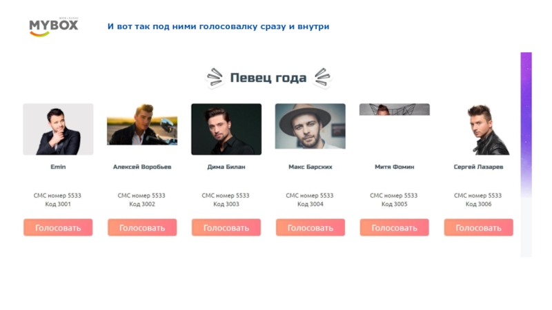 Слайд 7И вот так под ними голосовалку сразу и внутри