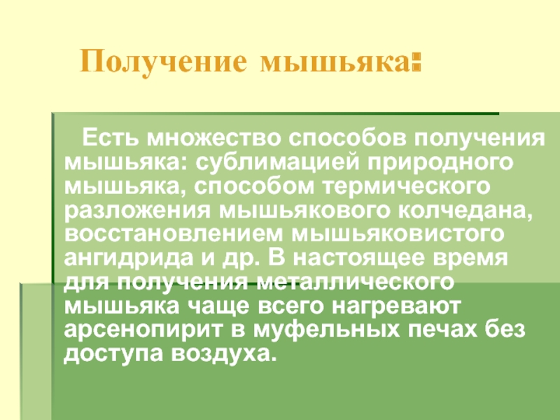 Многие из мышьяковых соединений в очень малых дозах применяются в качестве лекарств для борьбы с малокровием и рядом тяжелых заболеваний.