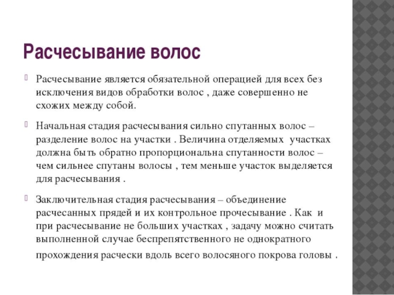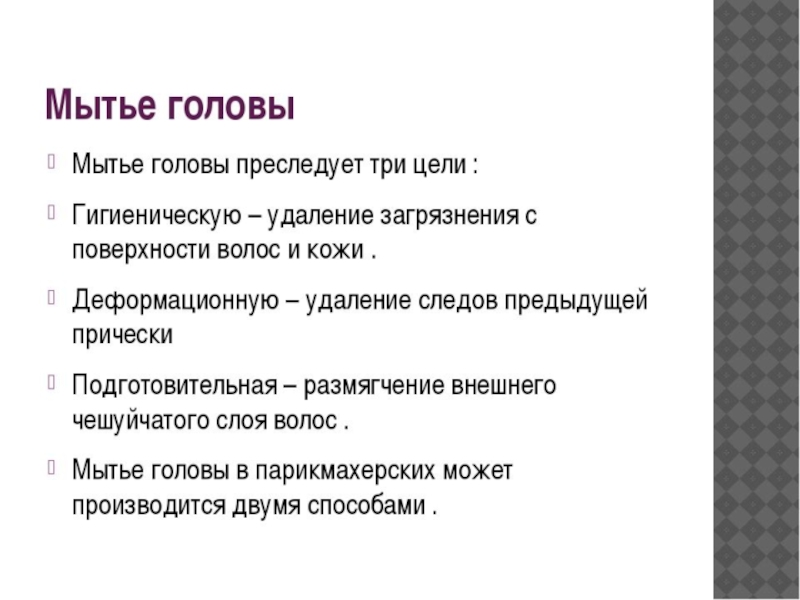 Мытье, сушка и расчесывание головы (для парикмахеров) презентация