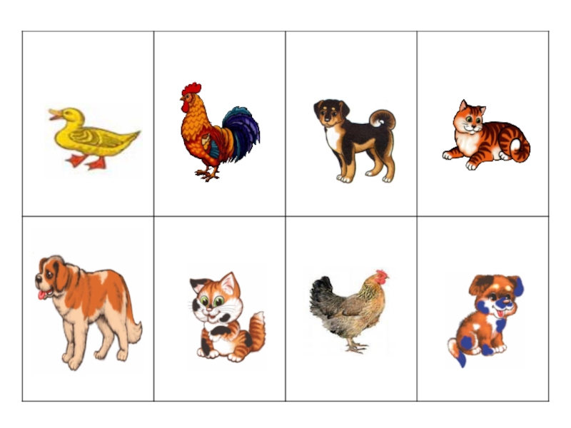 1 вариант. Ведущий показывает карточки с изображением животных и птиц. Ребенок, у которого “лес2 называет диких животных и забирает карточку себе, у которого “деревня”, собирает домашних животных и птиц.