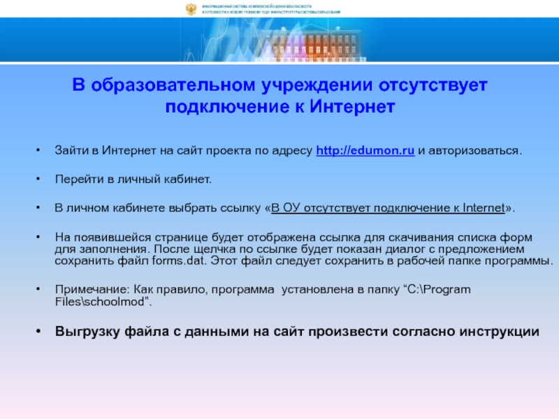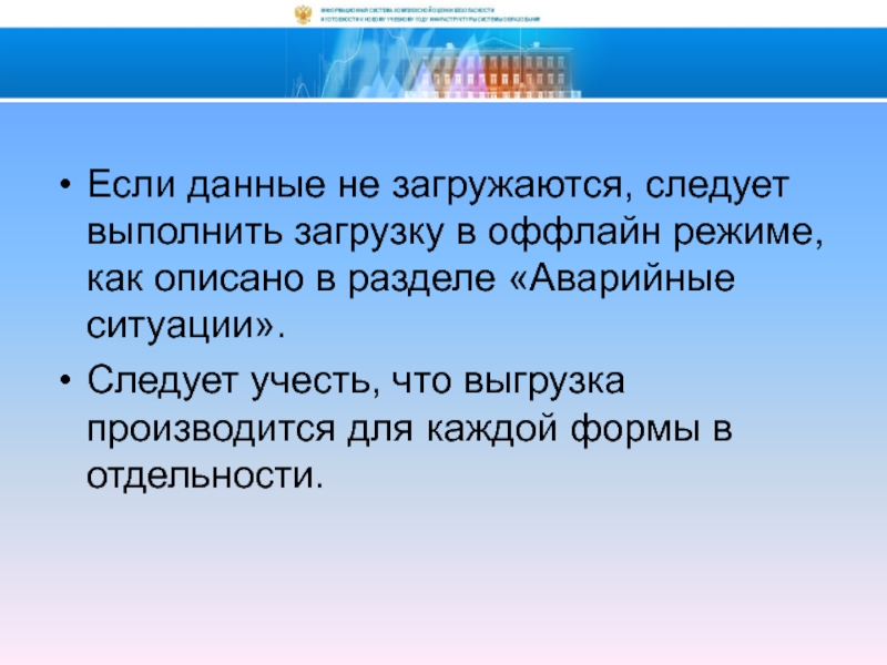 Слайд 32Если данные не загружаются, следует выполнить загрузку в оффлайн режиме, как