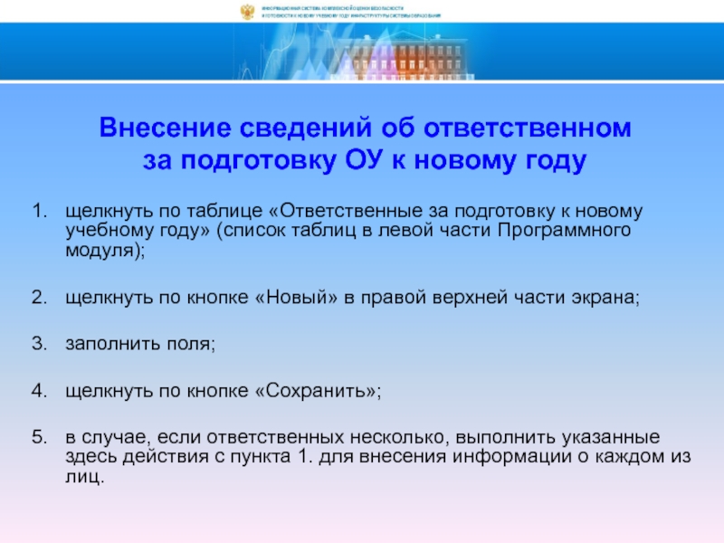 таблице «Ответственные за подготовку к новому учебному году» (список таблиц в левой части Программного модуля);
