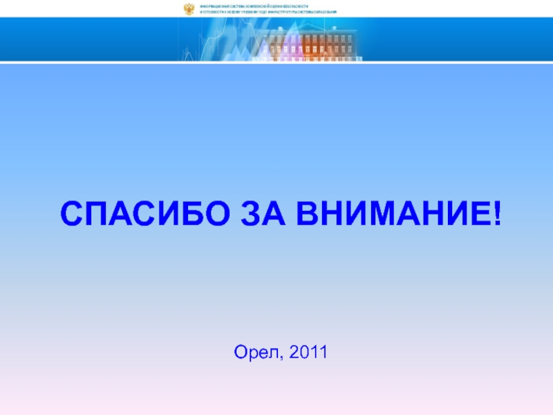 октября 2011 года № АП-1150/07 «Об информационной системе» и приказа Департамента образования, культуры и спорта Орловской области от 16 ноября 2011 г. № 2195 «О внедрении информационной системы комплексной оценки безопасности и готовности к новому учебному году инфраструктуры системы образования Орловкой области» в образовательных учреждениях Орловской области вводится в эксплуатацию информационная система комплексной оценки безопасности и готовности к новому учебному году инфраструктуры системы образования Российской Федерации, объединяющая задачи мониторинга состояния информационно-коммуникационных технологий в системе образования и комплексной оценки безопасности и готовности к новому учебному году инфраструктуры системы образования Российской Федерации