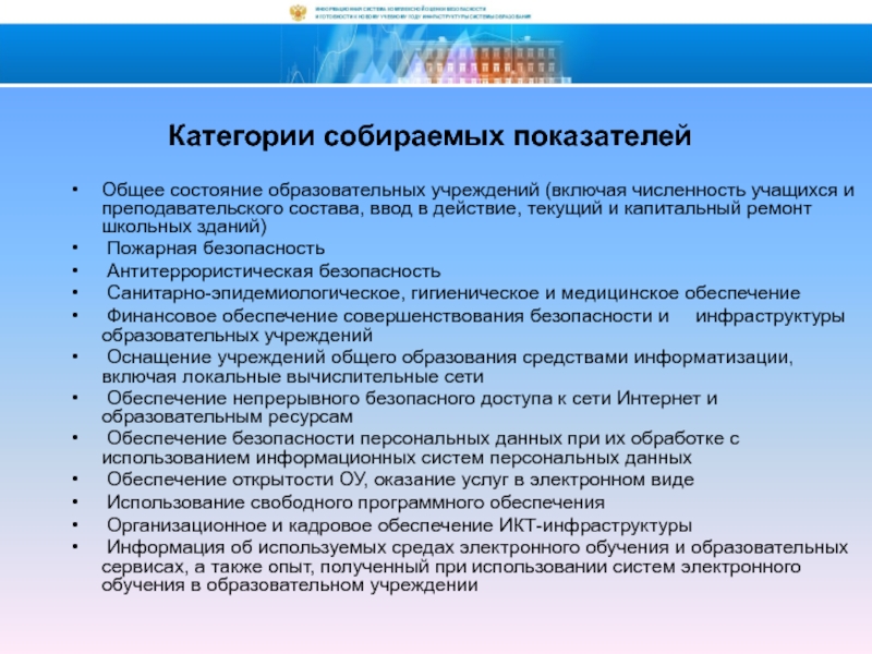 к новому учебному году инфраструктуры образовательных учреждений Российской Федерации, расположенных на территории субъектов Российской Федерации с использованием интернет и отображение аналитической информации об их состоянии в онлайн режиме