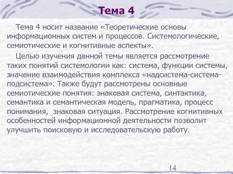 Тема 4. Теоретические основы информационных систем и процессов. Системологические, семиотические и когнитивные аспекты.