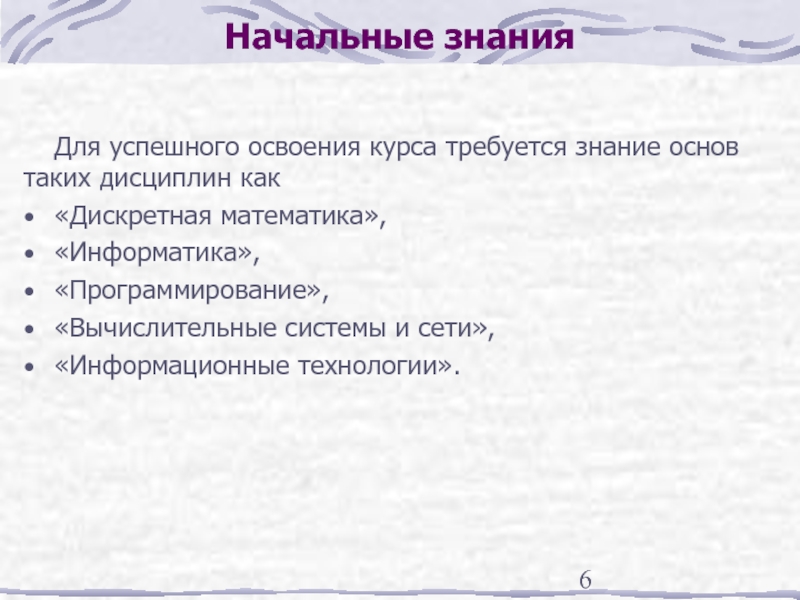 Данная дисциплина требует предварительного изучения курсов информатики,