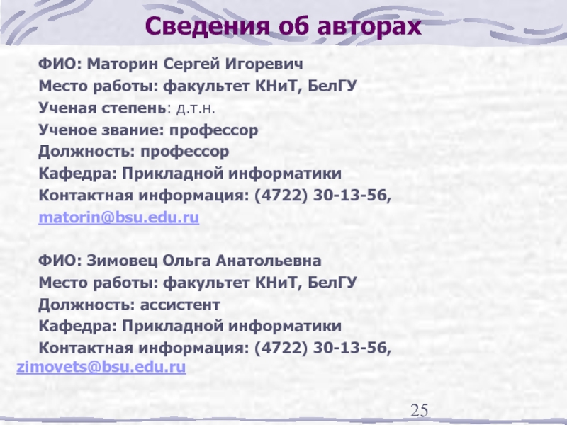 Контактная информация: (4722) 30-13-56, zimovets@bsu.edu.ru