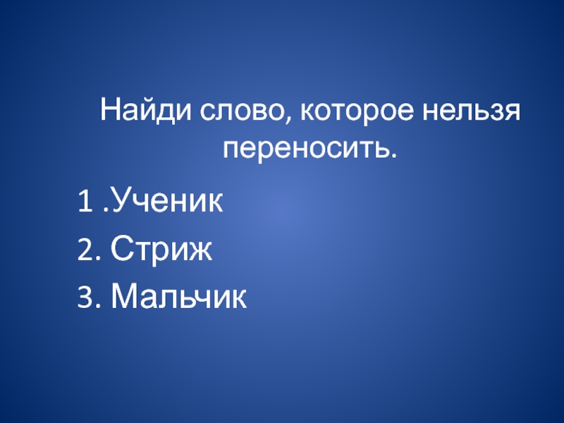 Слайд 3Найди слово, которое нельзя переносить.