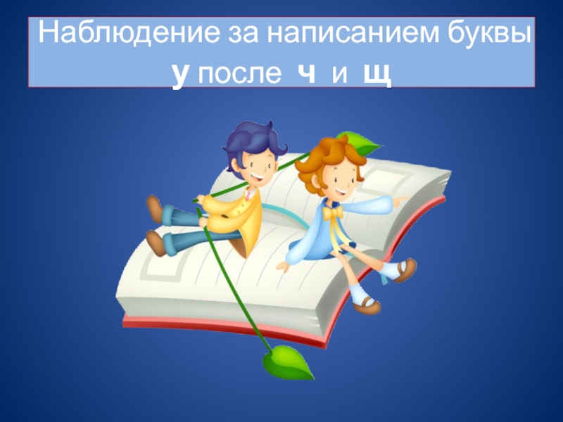 Слайд 1Наблюдение за написанием буквы у после ч и щ