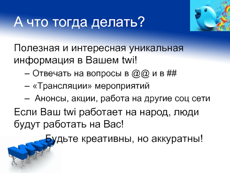 Если Ваш twi работает на народ, люди будут работать на Вас!