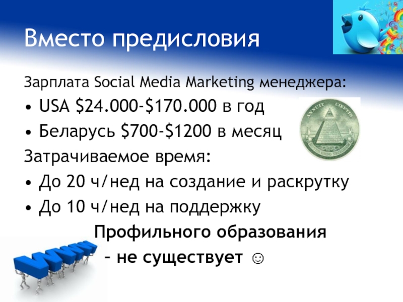 Проявите инициативу – многие компании и не представляют, что такое social media, и что есть такой человек как Вы.