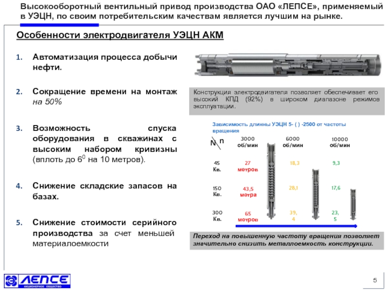 Высокооборотный вентильный привод производства ОАО «ЛЕПСЕ», применяемый в УЭЦН, по своим потребительским качествам является лучшим на рынке.