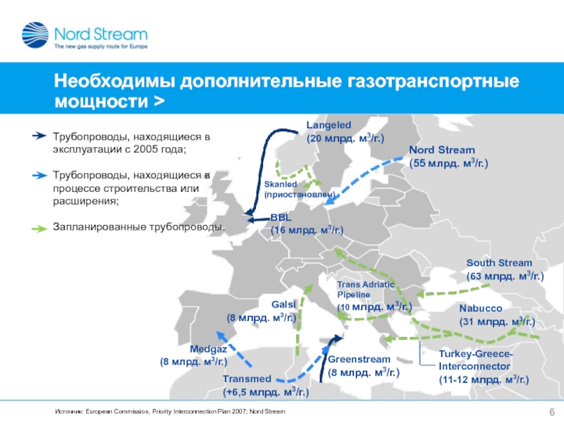 Запланированные трубопроводы.