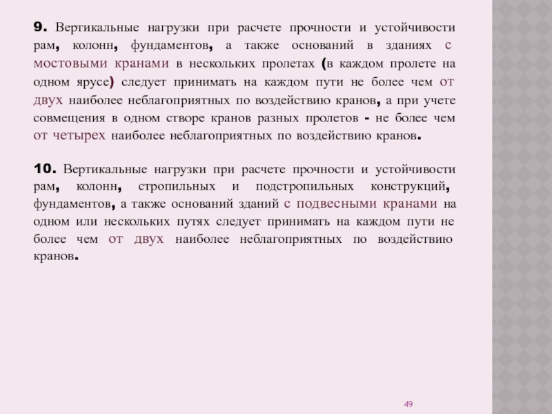 Слайд 46 1. Нагрузки от мостовых и подвесных кранов следует определять в