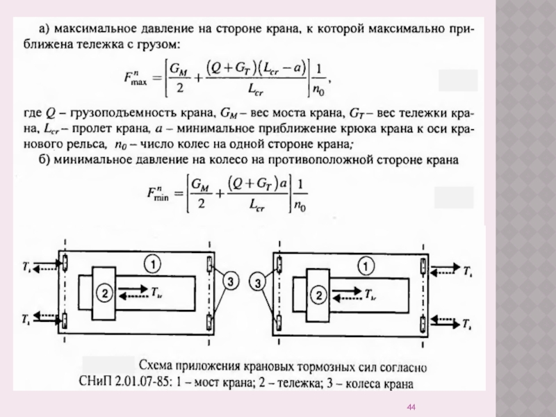 Слайд 43НАГРУЗКИ ОТ МОСТОВЫХ И ПОДВЕСНЫХ КРАНОВ.