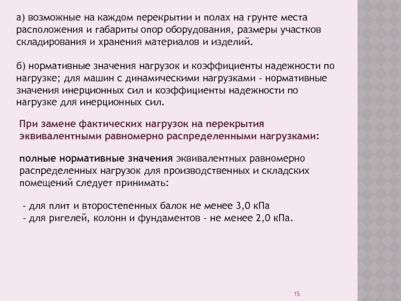При замене фактических нагрузок на перекрытия эквивалентными равномерно распределенными нагрузками: