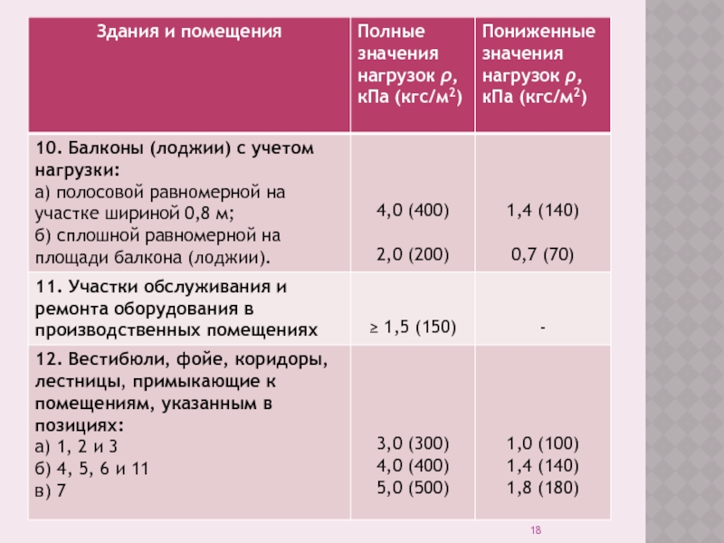 Слайд 16Нормативные значения равномерно распределенных временных нагрузок на плиты перекрытий, лестницы и