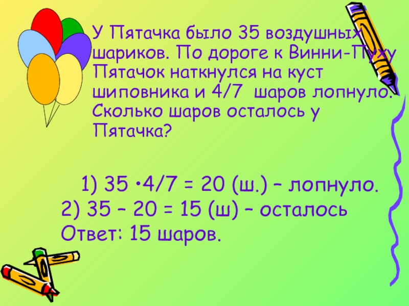 1) 35 •4/7 = 20 (ш.) – лопнуло.