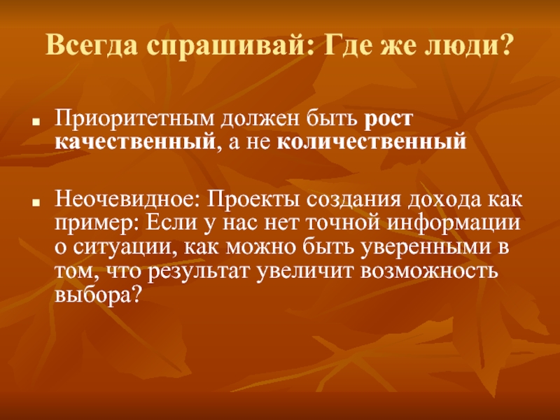 Неочевидное: Проекты создания дохода как пример: Если у нас нет точной информации о ситуации, как можно быть уверенными в том, что результат увеличит возможность выбора?