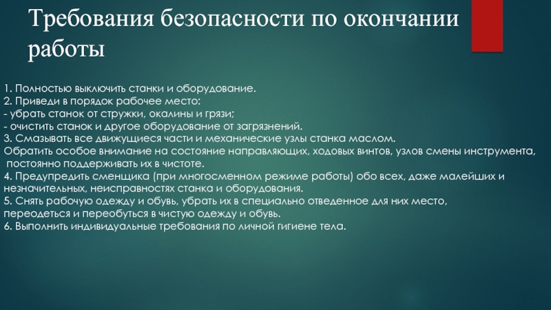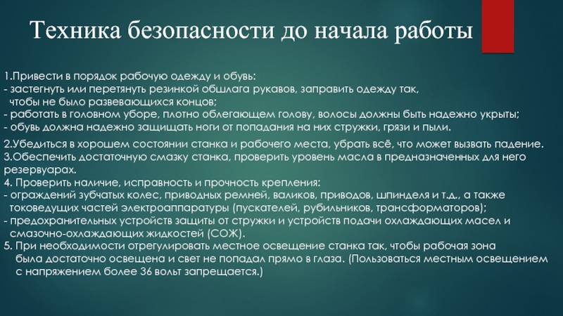 - обувь должна надежно защищать ноги от попадания на них стружки, грязи и пыли.
