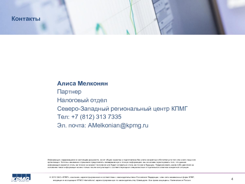 Информация, содержащаяся в настоящем документе, носит общий характер и подготовлена без учета конкретных обстоятельств того или иного лица или организации. Хотя мы неизменно стремимся представлять своевременную и точную информацию, мы не можем гарантировать того, что данная информация окажется столь же точной на момент получения или будет оставаться столь же точной в будущем. Предпринимать какие-либо действия на основании такой информации можно только после консультаций с соответствующими специалистами и тщательного анализа конкретной ситуации.