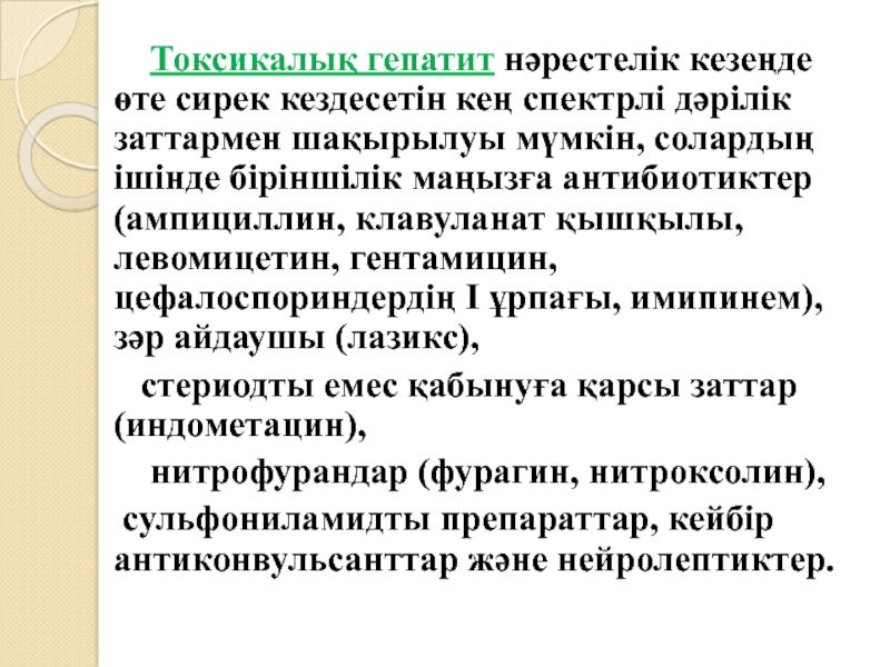 Слайд 15    Токсикалық гепатит нәрестелік кезеңде өте сирек кездесетін