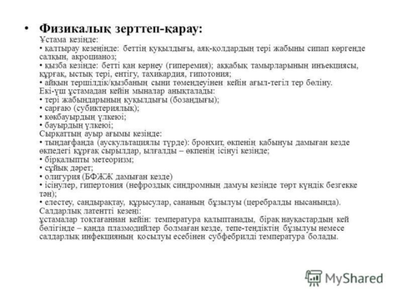 Слайд 4   Жасырын кезеңі 3-7 күнге созылады. Негізгі ауру белгілері: