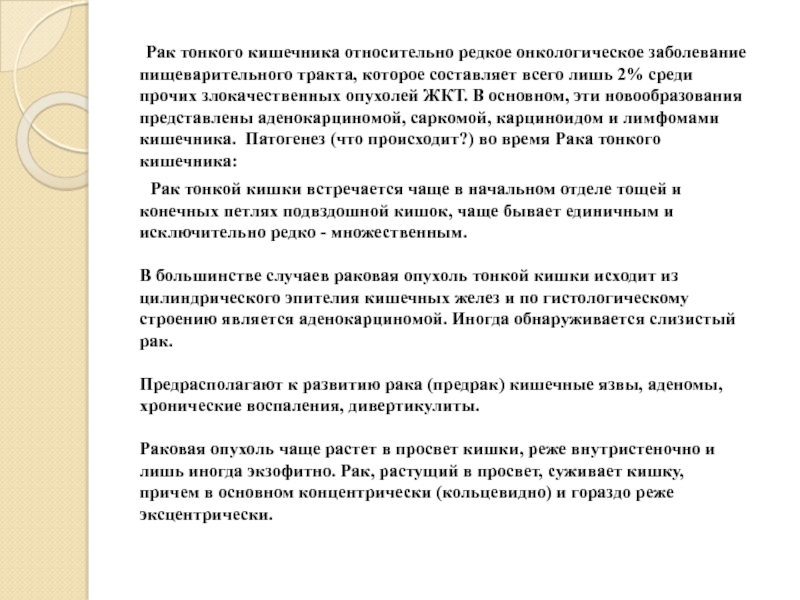 Слайд 30    Рак тонкого кишечника относительно редкое онкологическое заболевание пищеварительного
