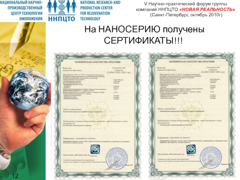 На сегодняшний день, компания поддерживает постоянный контакт с центром сертификации нанопродуктов при ГК РОСНАНО, и ее руководителем Г.Ю. Ткачуком. Под эгидой РОСНАНО, будет проходить дальнейшая апробация и выдача соответствующих сертификатов соответствия на продукцию ННПЦТО.