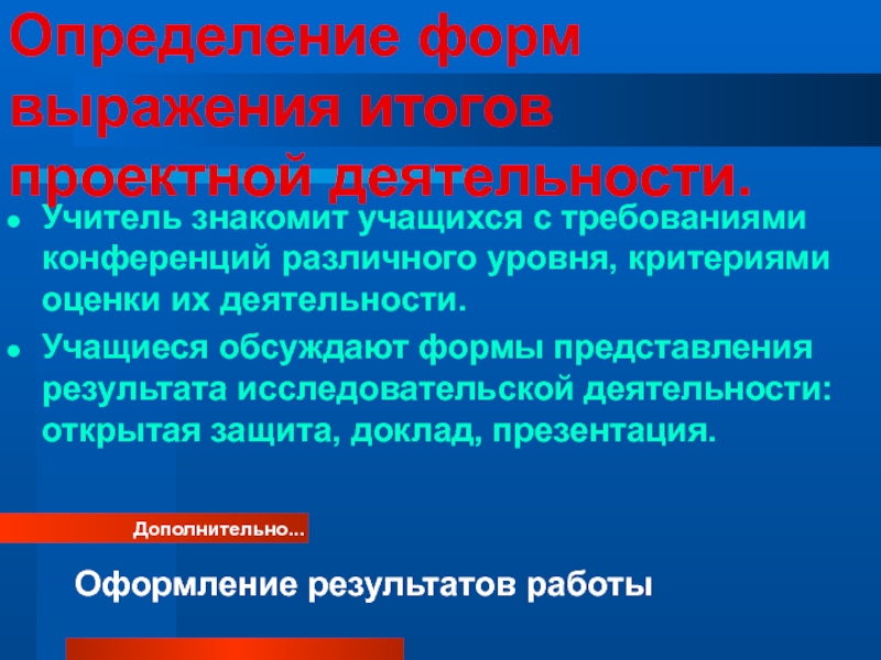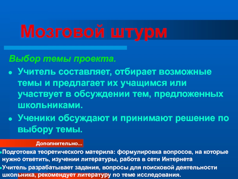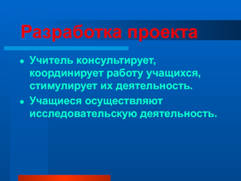 Учитель разрабатывает задания, вопросы для поисковой деятельности школьника, рекомендует литературу по теме исследования.