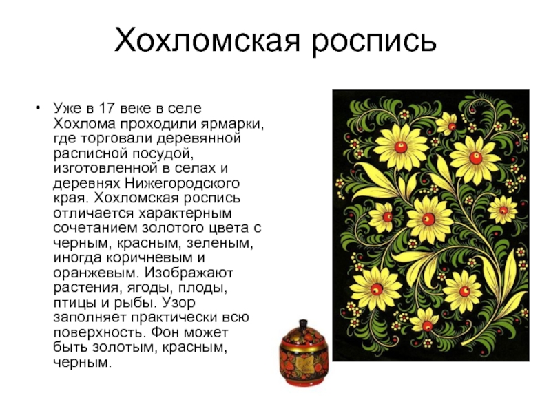 Уже в 17 веке в селе Хохлома проходили ярмарки, где