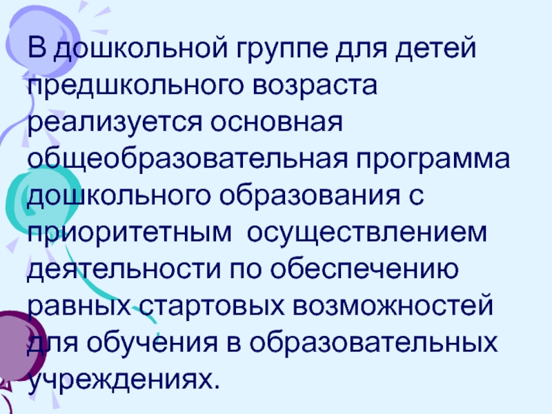 дошкольного образования с приоритетным осуществлением деятельности по обеспечению равных стартовых возможностей для обучения в образовательных учреждениях.