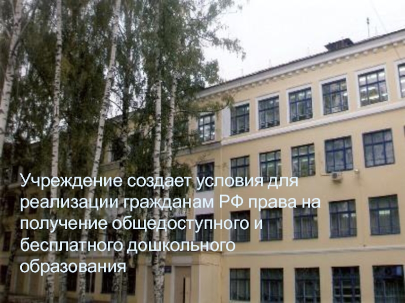 Слайд 2Учреждение создает условия для реализации гражданам РФ права на получение общедоступного