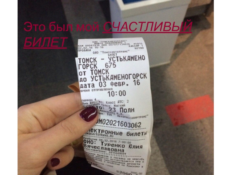 Это был мой СЧАСТЛИВЫЙ БИЛЕТ