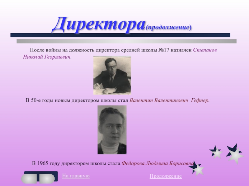 В 50-е годы новым директором школы стал Валентин Валентинович Гефнер.