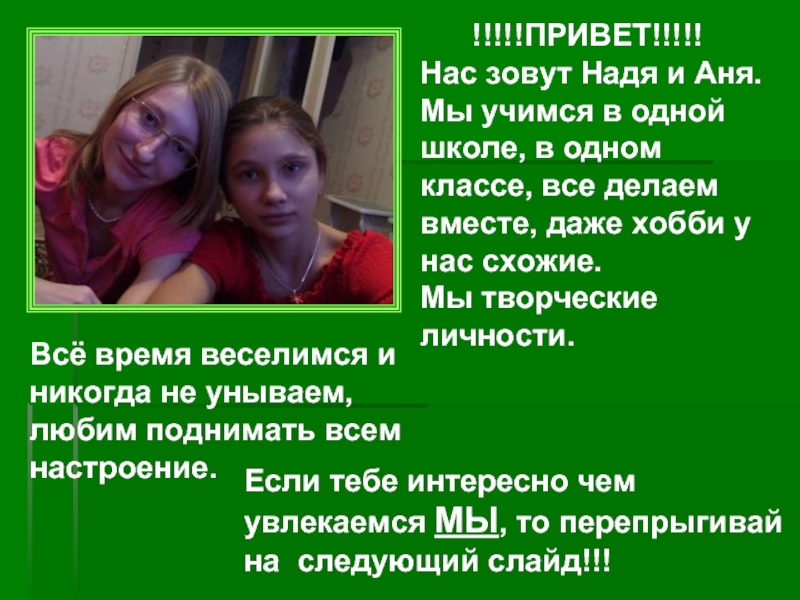 Если тебе интересно чем увлекаемся МЫ, то перепрыгивай на следующий слайд!!!
