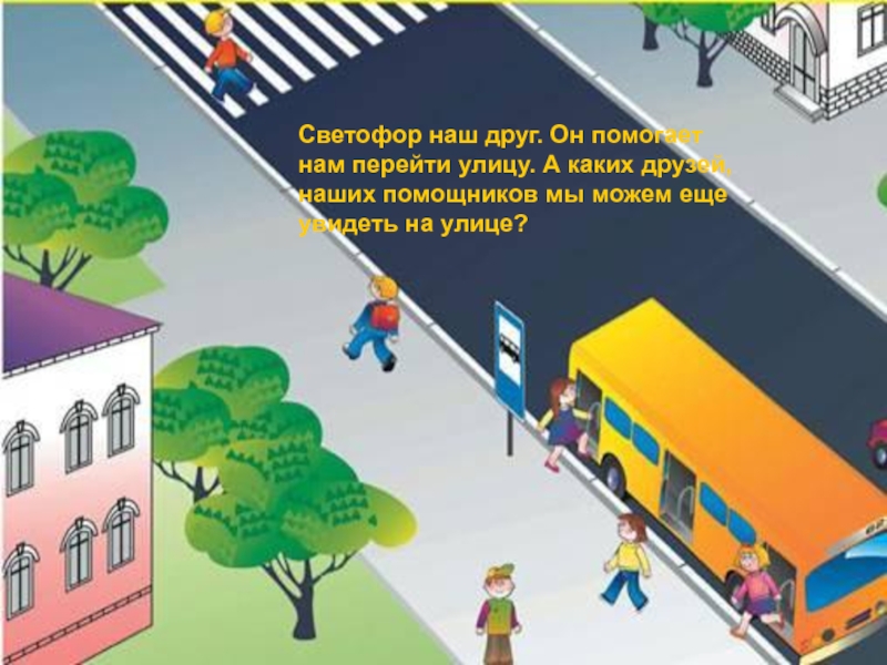Слайд 10Светофор наш друг. Он помогает нам перейти улицу. А каких друзей,