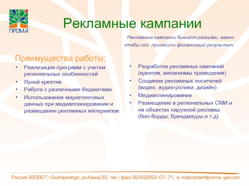 Разработка рекламных кампаний (креатив, механизмы проведения)