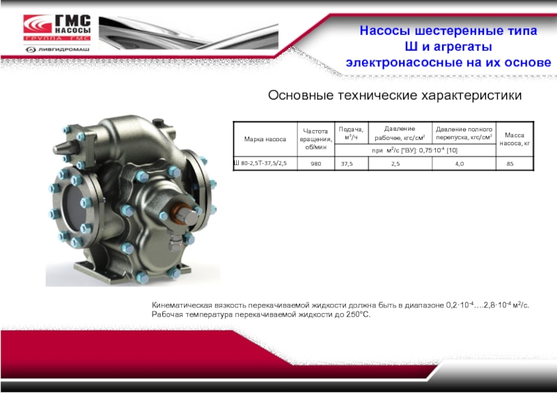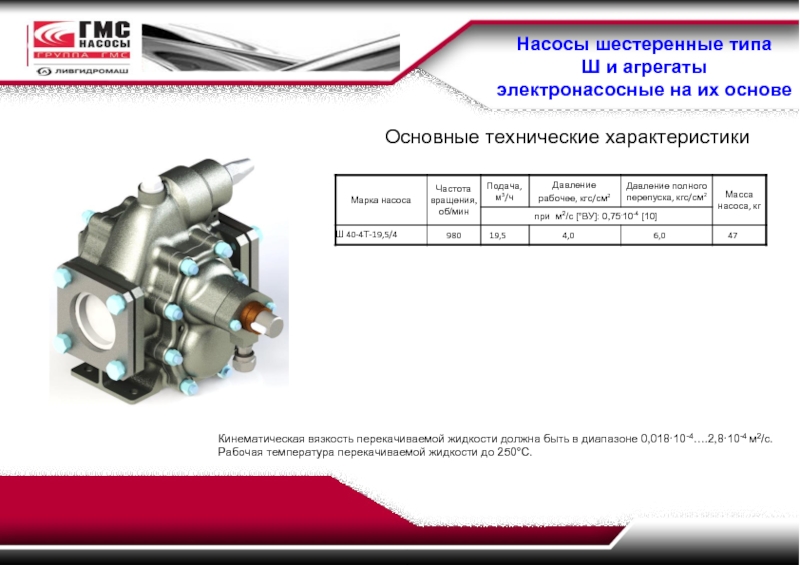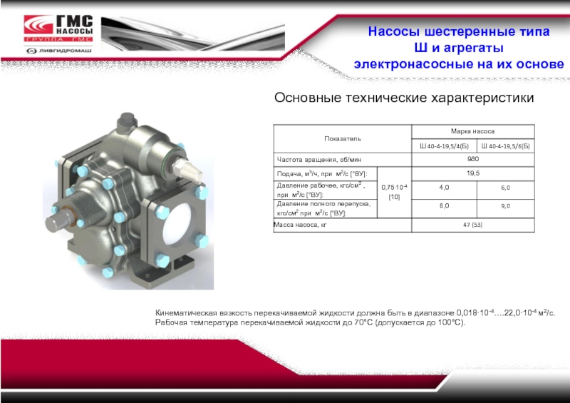 Кинематическая вязкость перекачиваемой жидкости должна быть в диапазоне 0,2·10-4….2,8·10-4 м2/с.