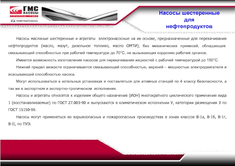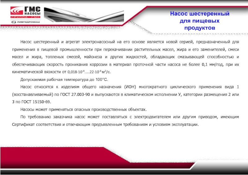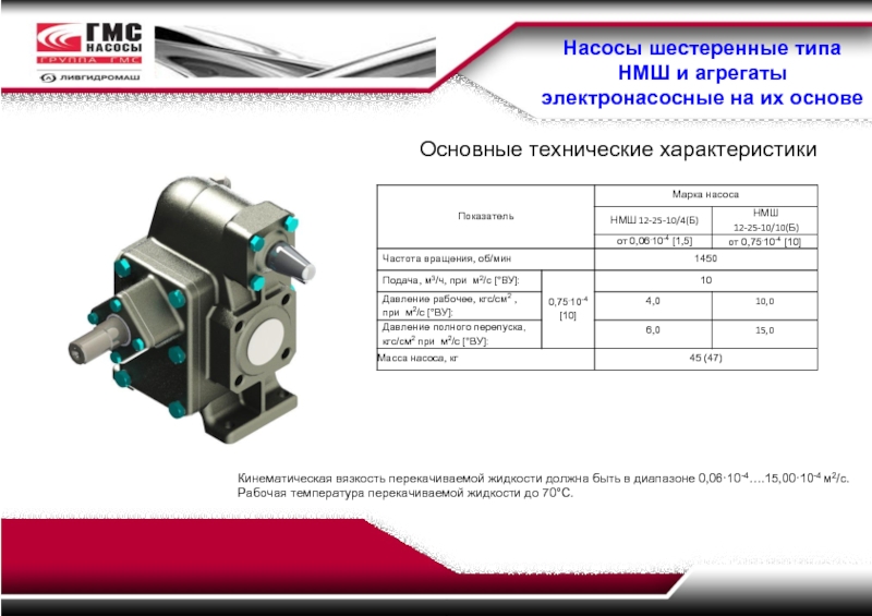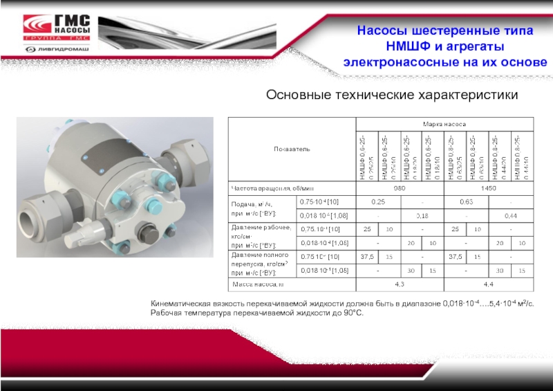 Кинематическая вязкость перекачиваемой жидкости должна быть в диапазоне 0,018·10-4….5,4·10-4 м2/с.