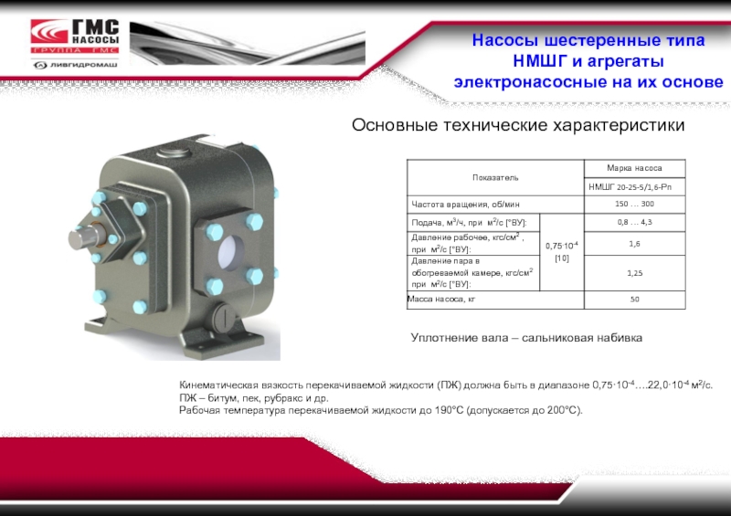 Кинематическая вязкость перекачиваемой жидкости (ПЖ) должна быть в диапазоне 0,75·10-4….6,0·10-4 м2/с.