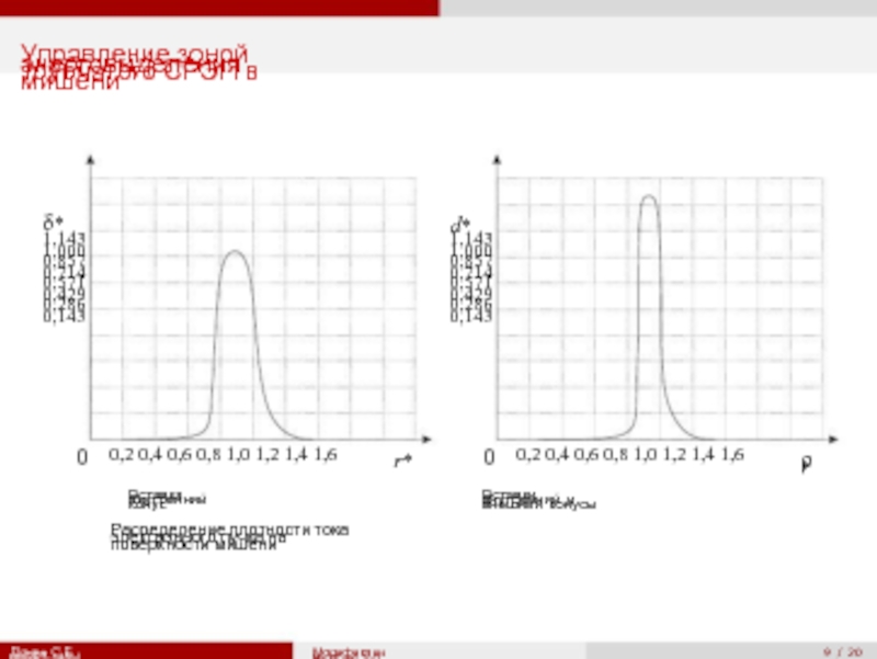Расределение плотности тока электронного пучка на поверхности мишени
