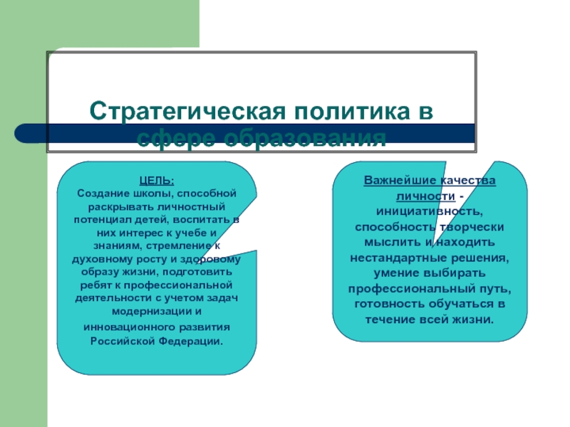 Воспитание порядочного и патриотичного человека, личности, готовой к жизни в высокотехнологичном, конкурентном мире.