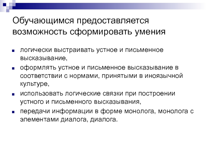 Слайд 12Обучающимся предоставляется возможность сформировать умения