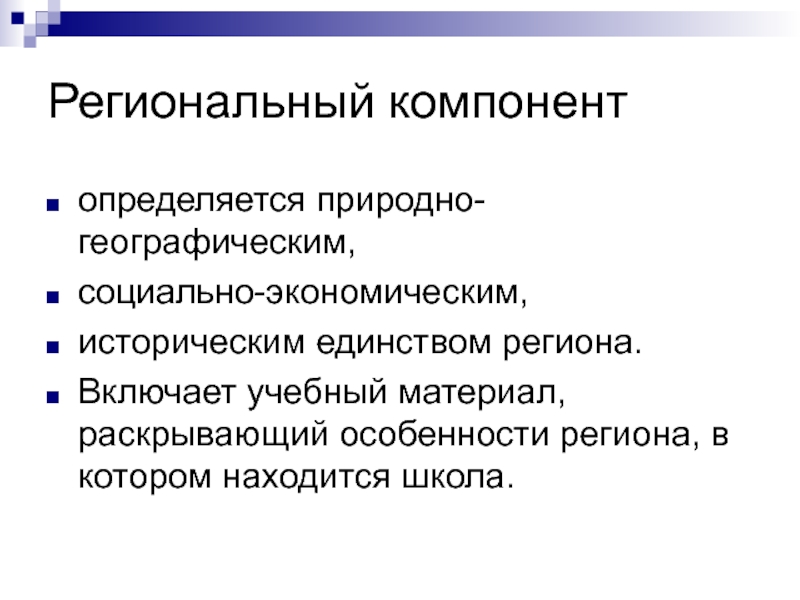 целое с федеральным компонентом государственного образовательного стандарта, дополняет и детализирует его содержание с учетом специфики региона.