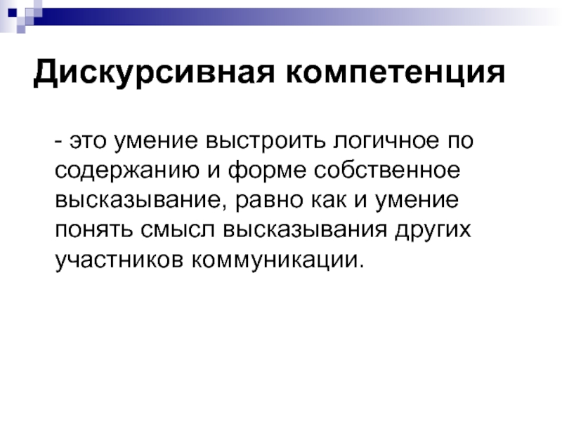 и форме собственное высказывание, равно как и умение понять смысл высказывания других участников коммуникации.