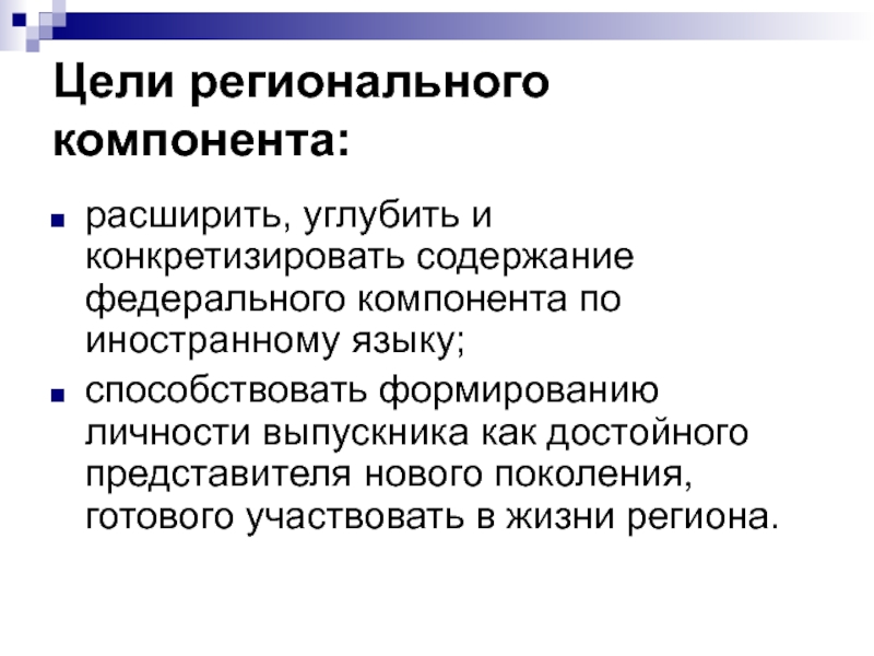 расширить, углубить и конкретизировать содержание федерального компонента по иностранному