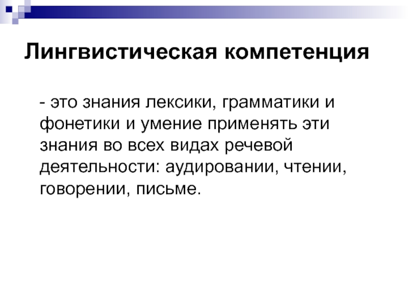 и умение применять эти знания во всех видах речевой деятельности: аудировании, чтении, говорении, письме.