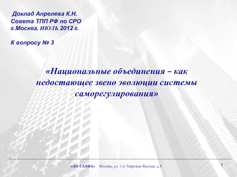 «Национальные объединения – как недостающее звено эволюции системы саморегулирования»