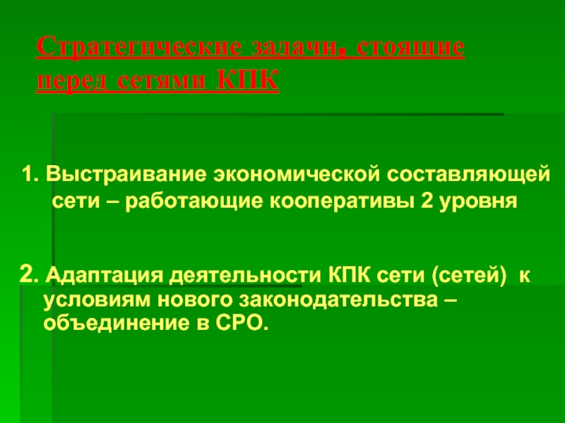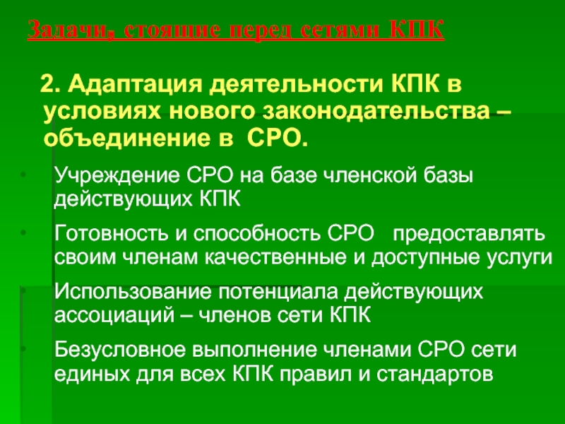 2. Адаптация деятельности КПК сети (сетей) к условиям нового законодательства – объединение в СРО.